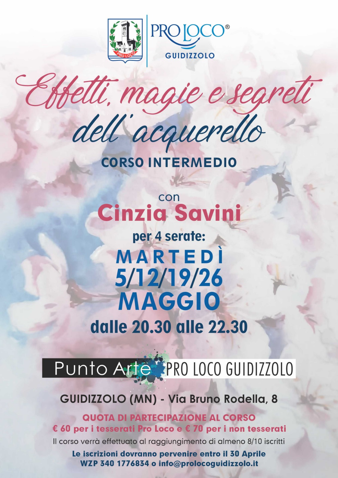 Info e prenotazioni: Wzp 340 1776834 o info@prolocoguidizzolo.it